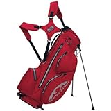 Fully functional and waterproof for all-weather performance. Features: Waterproof YKK zippers and taped seams (waterproof pockets), Lightweight nylon fabric with 2000 mm waterproof coating (waterproof fabric), Rainhood with taped seams and waterproof zipper (bag is waterproof if rainhood is used as designed in conjunction with the bag), Weighs just over 4 pounds, Patented 9.5" six-way top with integrated handle (for easy on/off), Top-molded stand attachment for increased durability and stability, Top-mounted strap attachment (better balance/easier carry), E-Z Fit Dual Strap System (easily adjustable), Triangular non-slip foot pads (resists sinking into grass/sliding on slick surfaces), Top-mounted leg mechanism (increased durability and stability), Patented Roller Bottom leg mechanism (easy activation), Six pockets, including a water bottle pouch and velour-lined valuables pocket, Attached ball liner (precisely mark balls), Towel holder, Umbrella holder.
